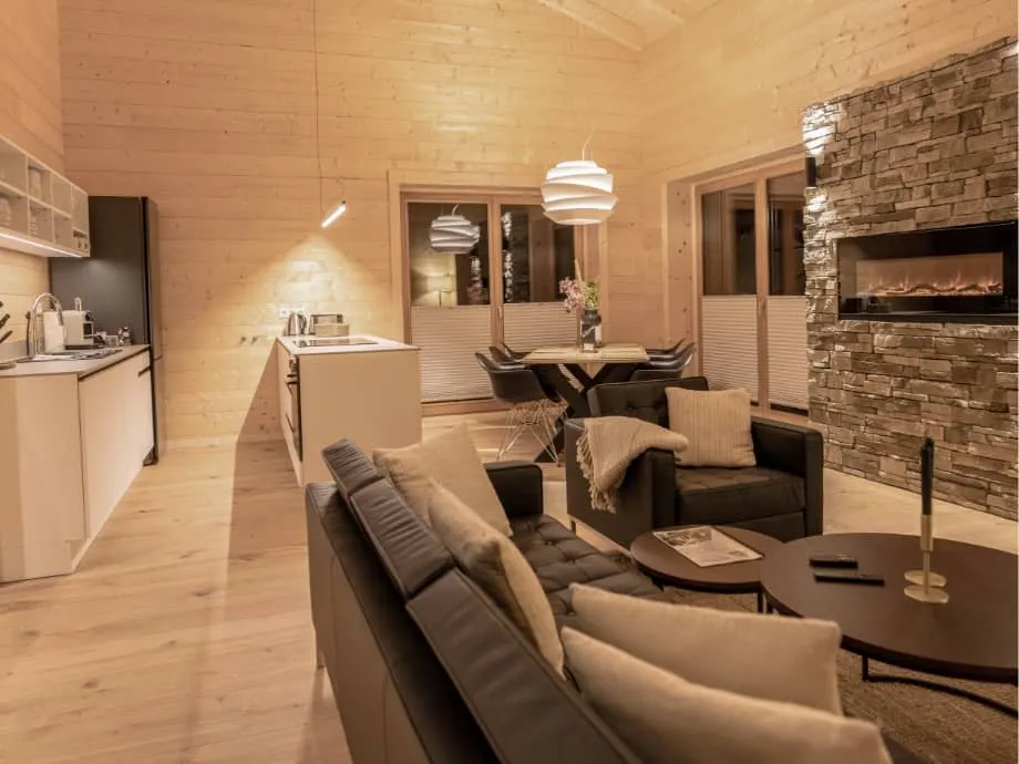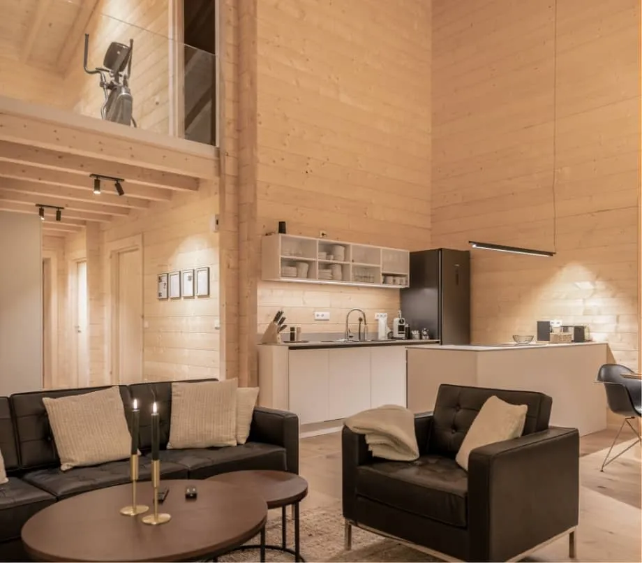 Das Luxus-Chalet bietet Platz für die ganze Familie. Für max. 6 Personen verfügt das Chalet über drei vollwertige Schlafzimmer und zwei Wellnessbereiche mit freistehender Badewanne und Sauna. Über den Galeriebereich haben Sie Blick in den offenen Wohn- und Essbereich sowie Zugang zur Terrasse.