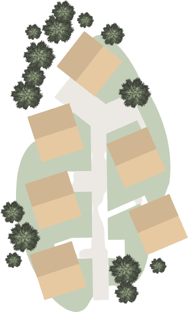 Unsere Ferienhäuser befinden sich in einer ruhigen Sackgassenlage mit direktem Zugang zu weitläufigen Grünflächen und einer großzügigen Umwaldung.